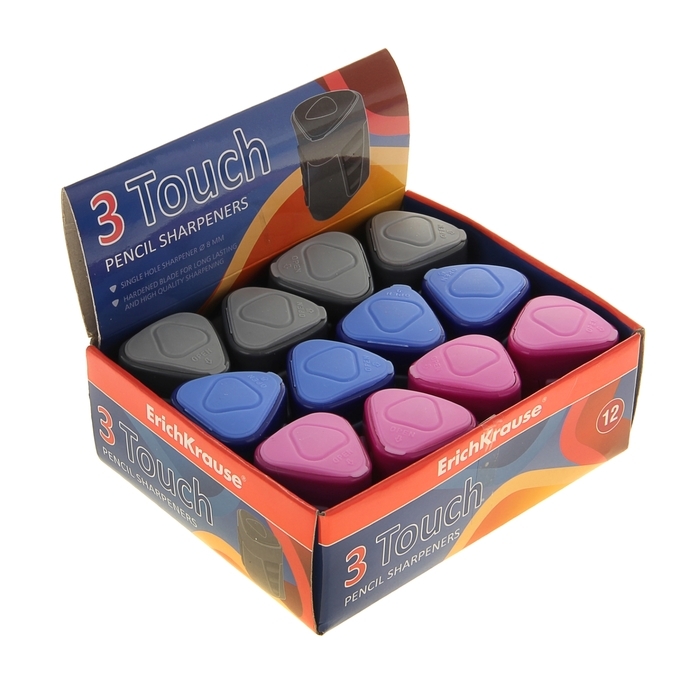 Точилка 1 отверстие Erich Krause 3-TOUCH, с контейнером, отверстие диаметром 8 мм, микс