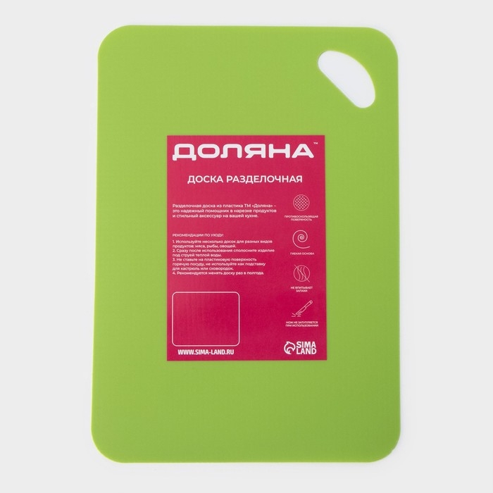 Доска разделочная противоскользящая гибкая Доляна, 33×23 см, цвет зелёный