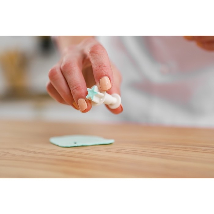 - Надавив на плунжер, сделайте вырубку мастики нужной формы.
