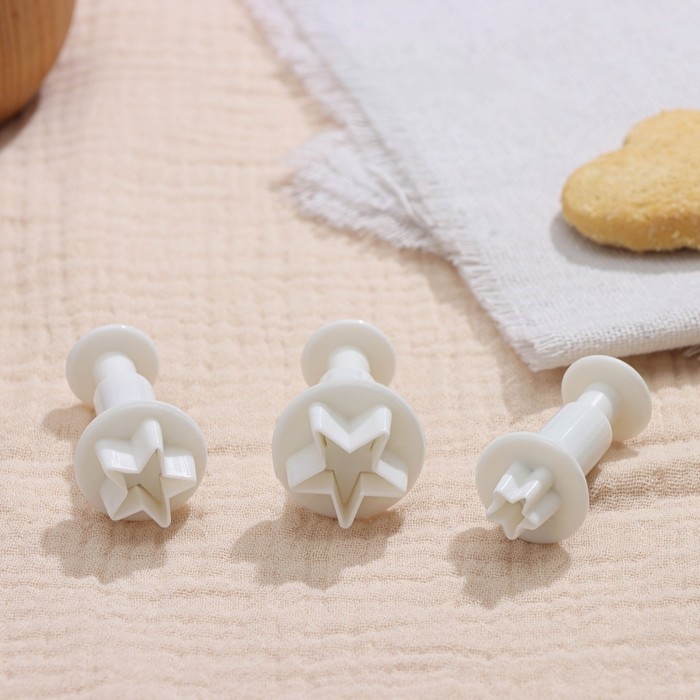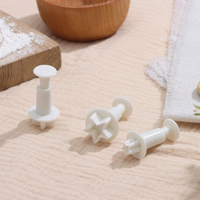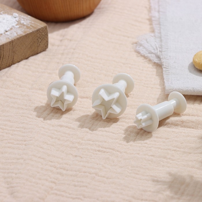 Набор плунжеров кондитерских Доляна «Звёздочка», 3 шт: d=2 см, d=2,2 см, d=2,5 см, цвет белый