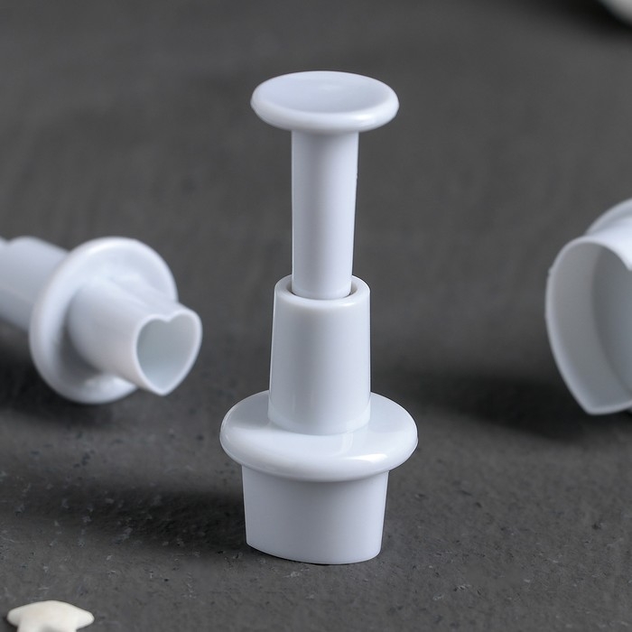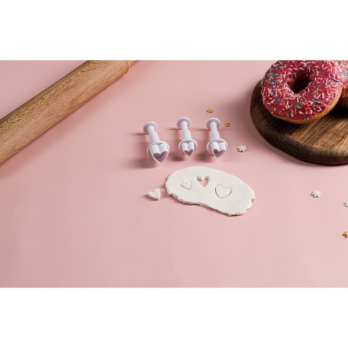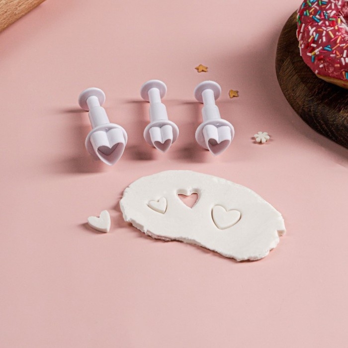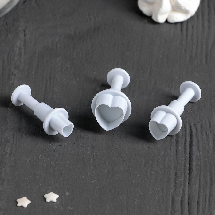 Набор плунжеров кондитерских Доляна «Сердечко», 3 шт: 1,6×1,1 см, 1,4×1 см, 1×1 см, цвет белый