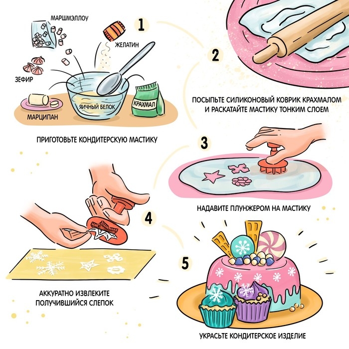 Чтобы мастика не прилипала к плунжеру, смазывайте его поверхность растительным жиром или используйте крахмал.