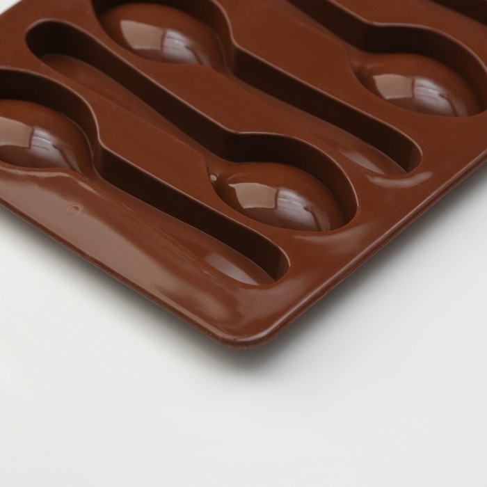 Форма для шоколада Доляна «Ложечки», силикон, 18×12×1,2 см, 6 ячеек (9,8×2,3 см), цвет коричневый