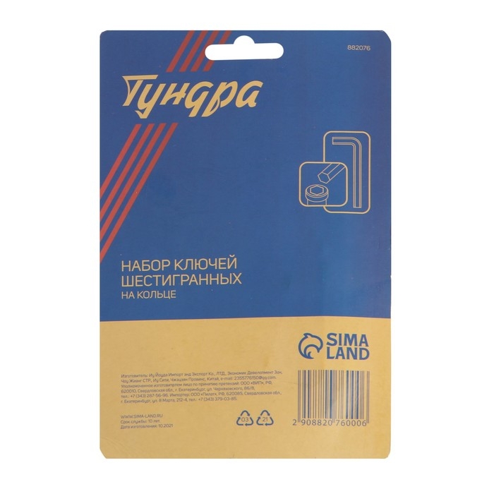 Набор ключей усиленных шестигранных на кольце ТУНДРА, 1.5 - 10 мм, 10 шт.