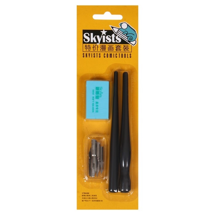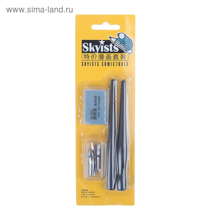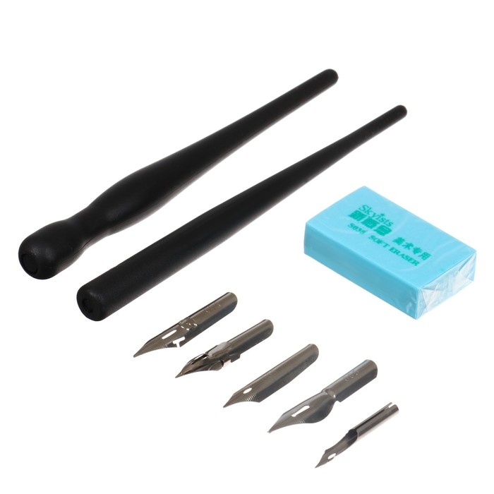 Набор перьев, 5 штук, нержавейка с 2-мя держателями + ластик на блистере