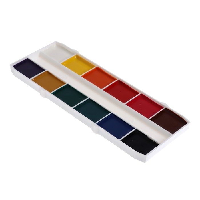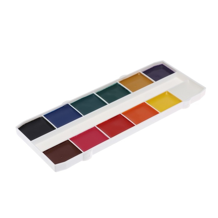 Краски акварельные, в кюветах, с кистью, 12 цветов