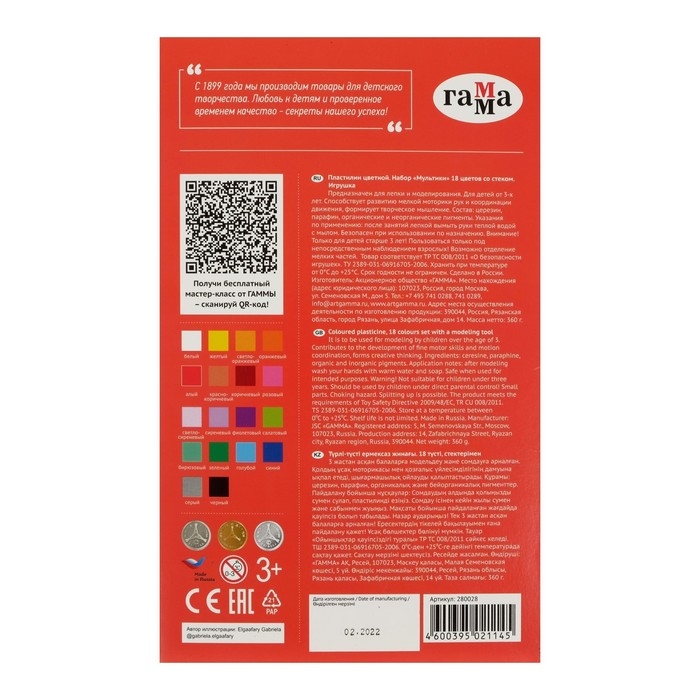 Пластилин серии "Мультики" разработан специально для детей от 6 до 9 лет с учетом рекомендаций педагогов.