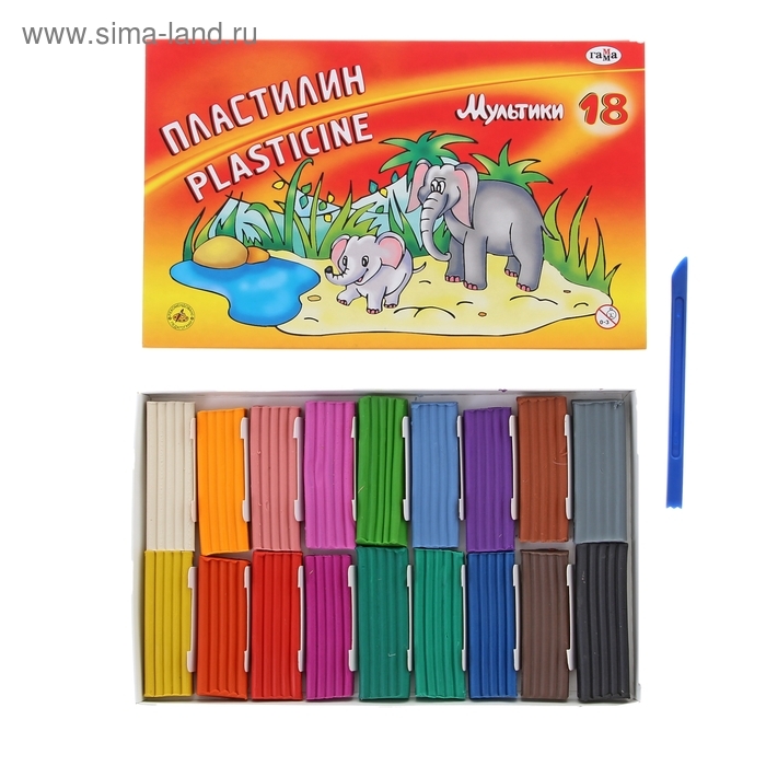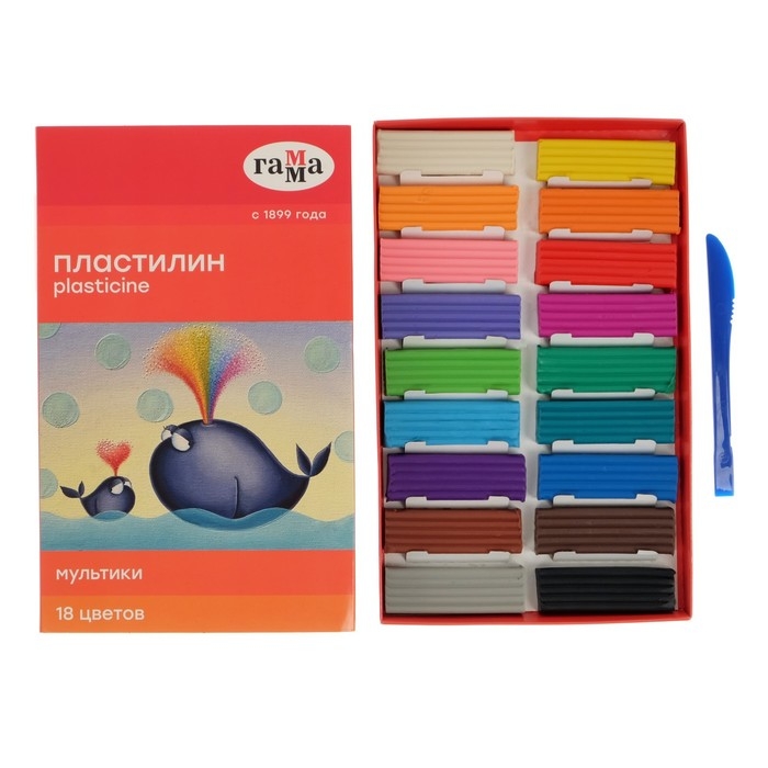 Пластилин 18 цветов 360 г, "Гамма" "Мультики", со стеком