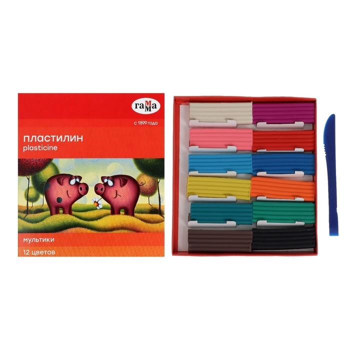 Пластилин 12 цветов 240 г, Гамма "Мультики", со стеком, картонная упаковка 280018