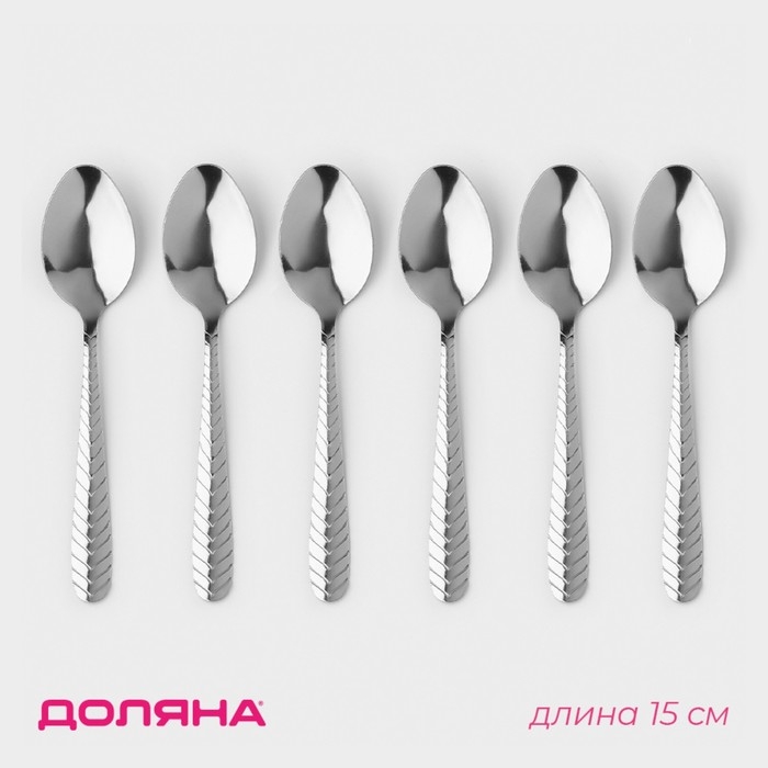 Набор ложек чайных из нержавеющей стали Доляна «Колосок», длина 15 см, 6 шт, цвет серебряный