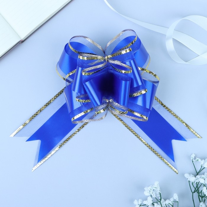 Применение: Для того чтобы собрать бант, надо потянуть за две ленточки, находящиеся между широкими лентами, удерживая широкие ленты в месте спайки.