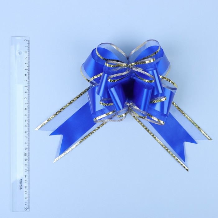 Бант-бабочка №7 "Золотая полоса", цвет синий