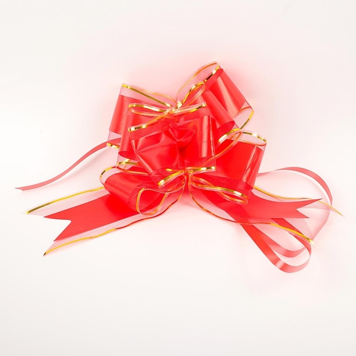 Применение: Для того чтобы собрать бант, надо потянуть за две ленточки, находящиеся между широкими лентами, удерживая широкие ленты в месте спайки.