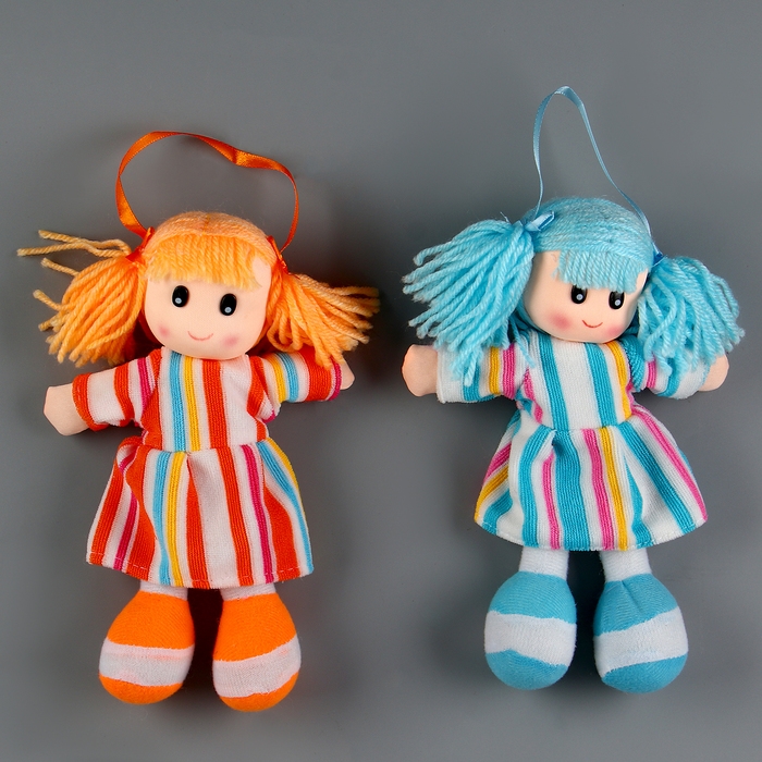 Мягкая игрушка «Кукла с хвостиками», в сарафане, полосатой кофте, цвета МИКС