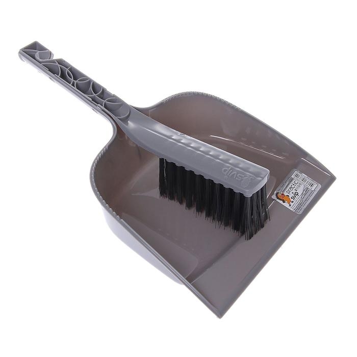 Щётка для пола, с совком-ловушкой, с крышкой, цвет серый