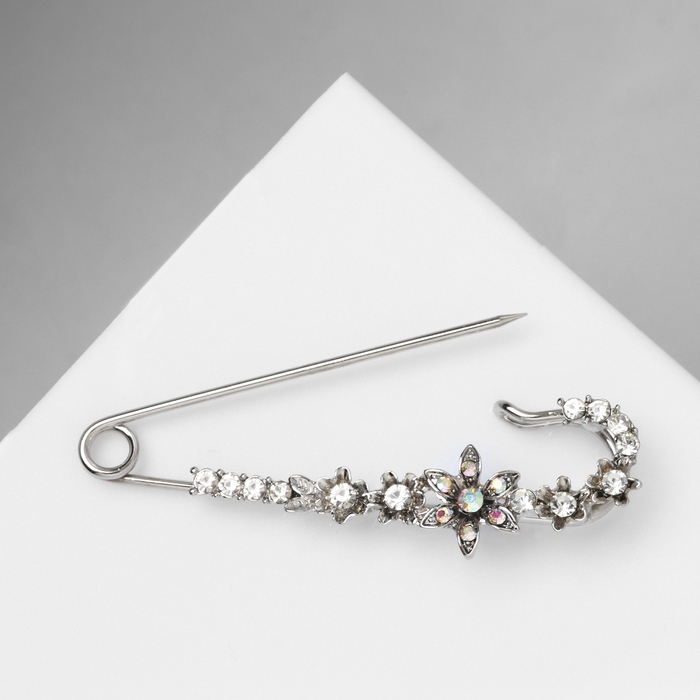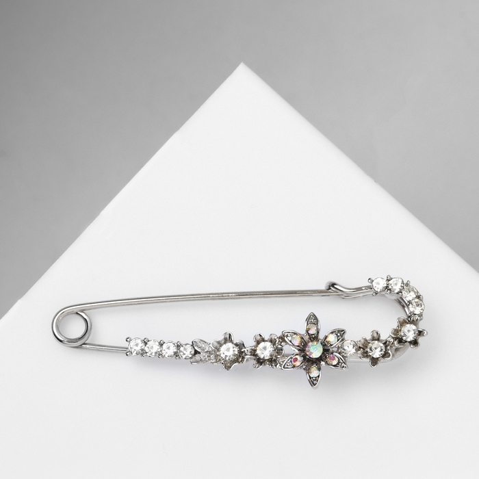 Булавка «Цветок» россыпь цветов, 7,3 см, цвет бело-радужный в серебре