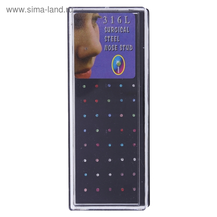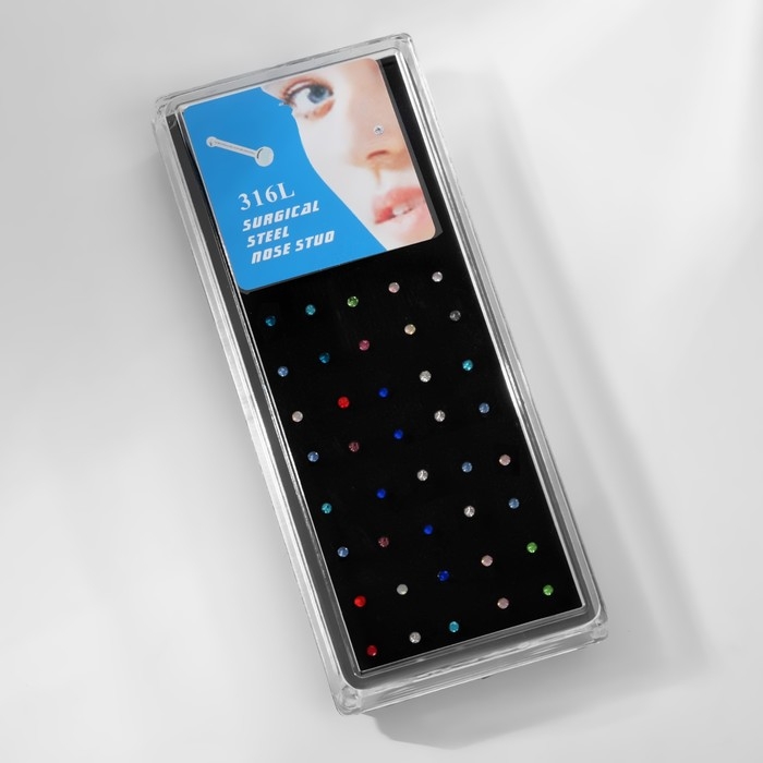 Пирсинг в нос (нострил) «Страза», прямой, L=10 мм, набор 40 шт., цвет МИКС в серебре