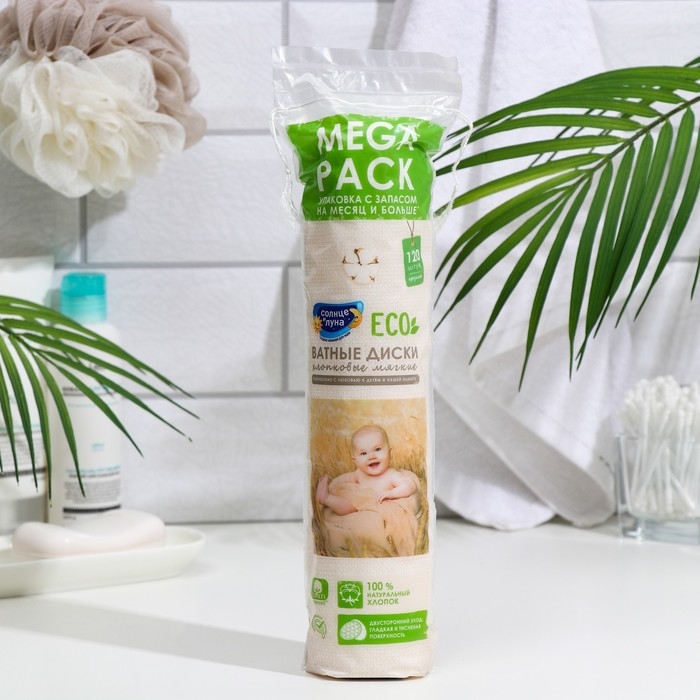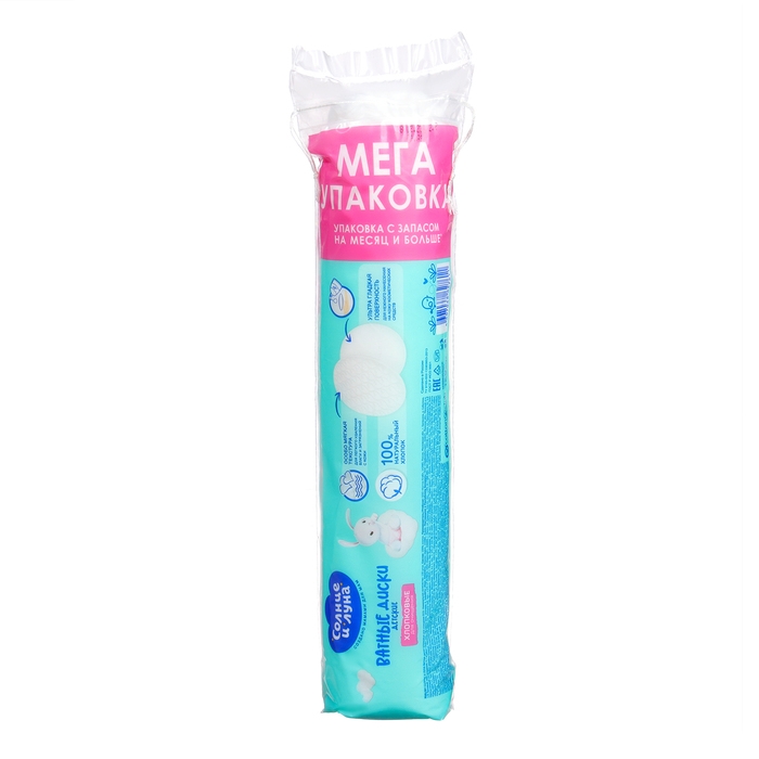 Ватные диски для детей "Солнце и луна", 120 шт.