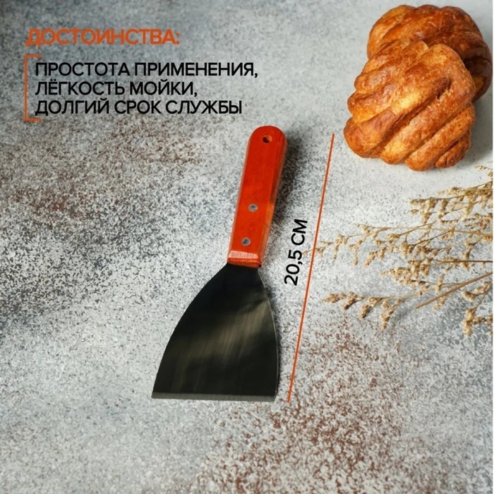 Инструмент используется для отделения блюд от стенок противней, а также для быстрой нарезки выпечки мягкой структуры.