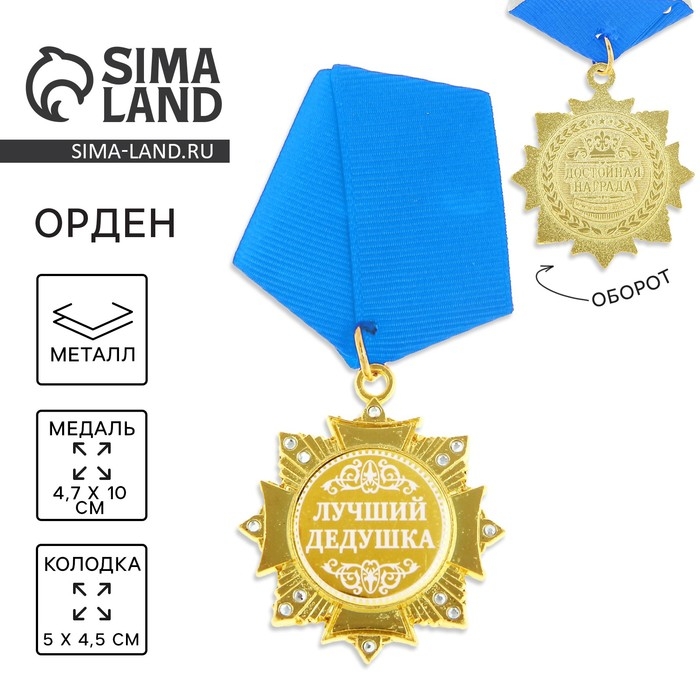 Медаль орден на подложке «Лучший дедушка», 4,7 х 10 см