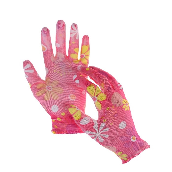 Изделия выполнены из нейлона и латекса и имеют специальную PVC-пропитку: такое сочетание материалов делает их особенно износоустойчивыми. Яркая расцветка поможет легко и быстро найти пропажу среди грядок.