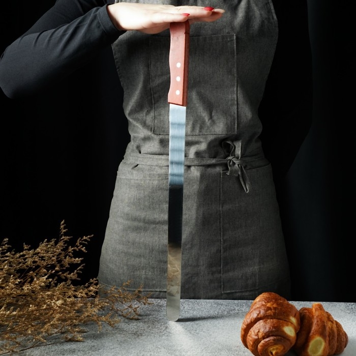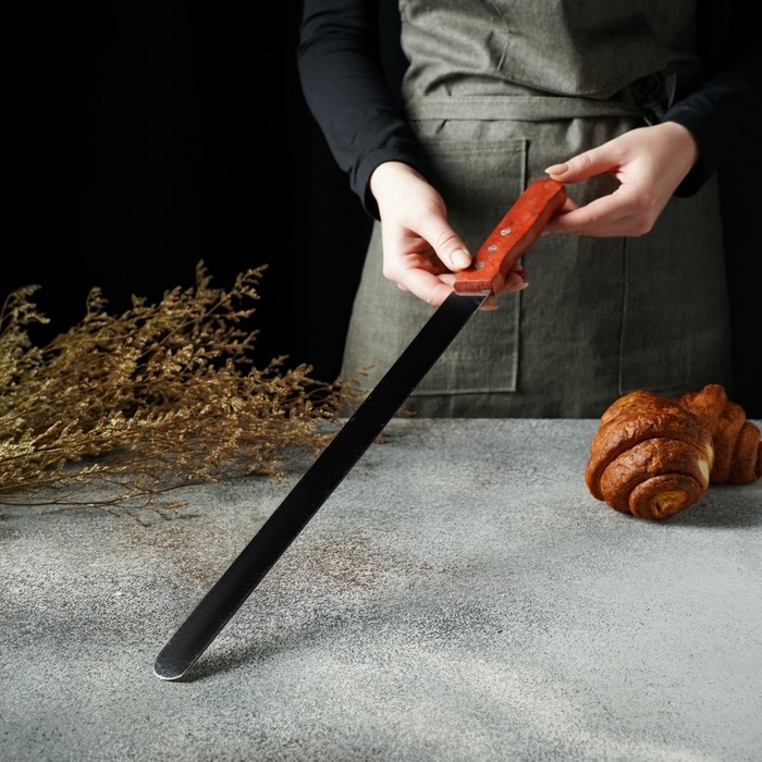 Нож для бисквита, ровный край, ручка дерево, длина лезвия 25 см, цвет коричневый