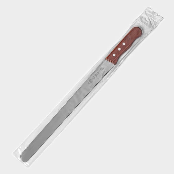 Нож для бисквита ровный край KONFINETTA, длина лезвия 35 см, деревянная ручка