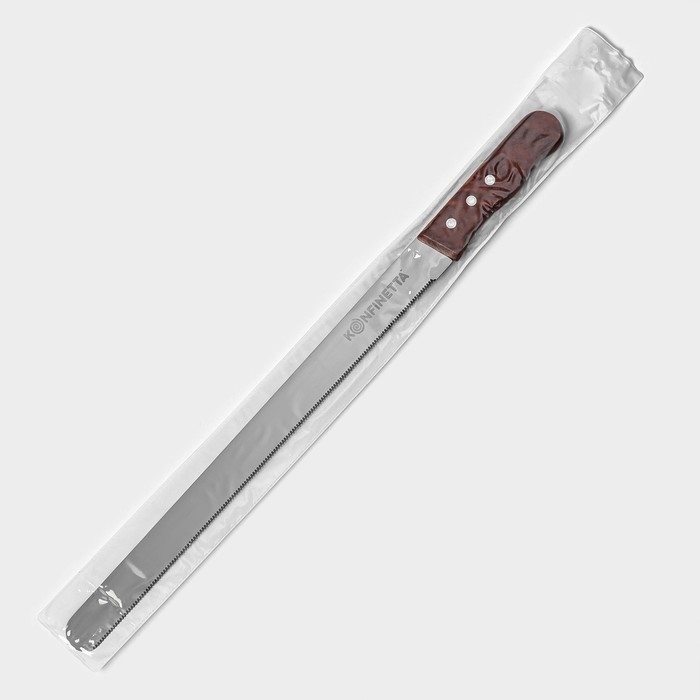 Нож для бисквита мелкие зубцы KONFINETTA, длина лезвия 35 см, деревянная ручка