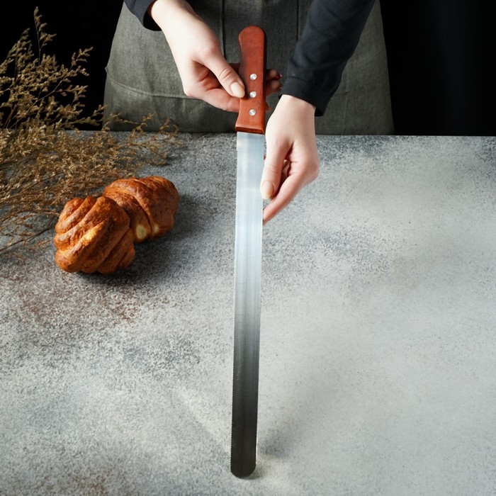 Нож для бисквита, ровный край, ручка дерево, длина лезвия 25 см, цвет коричневый
