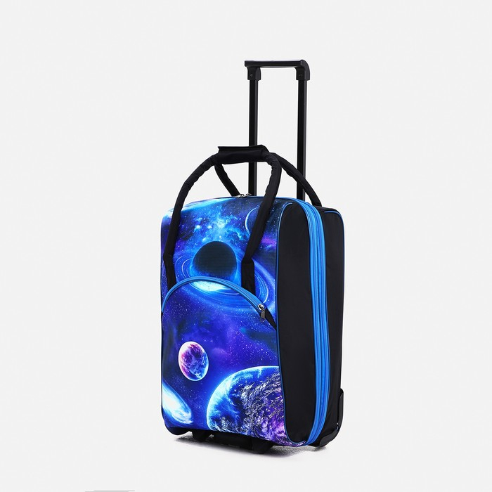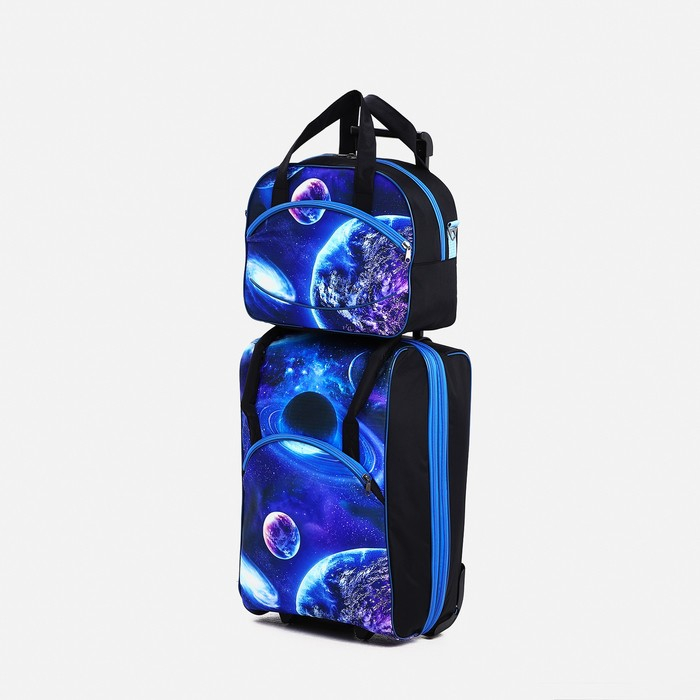 Чемодан малый 37 л (S) с сумкой, отдел на молнии, с расширением, цвет синий