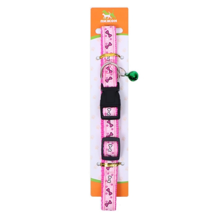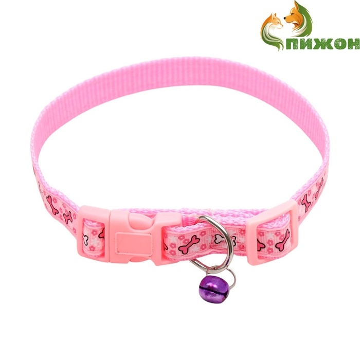 Ошейник нейлоновый "Звездные косточки", 36 х 1,5 см, розовый