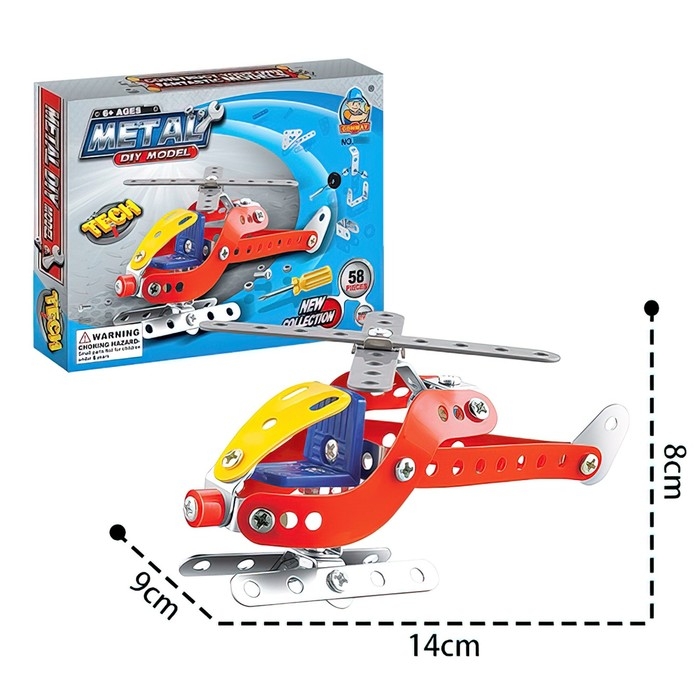 Конструктор металлический «Вертолёт», 58 деталей— то, что нужно маленькому инженеру! Эта увлекательная игрушка состоит из металлических деталей и имеет полный набор шурупов, винтиков и гаек.