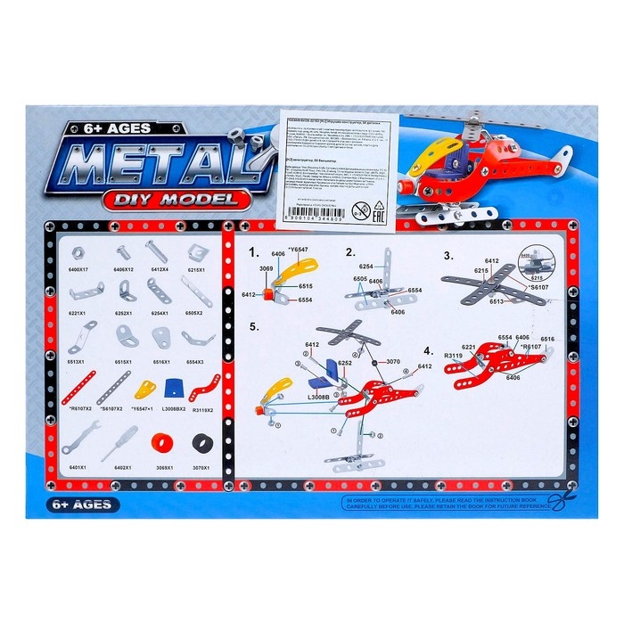 Конструктор металлический «Вертолёт», 58 деталей