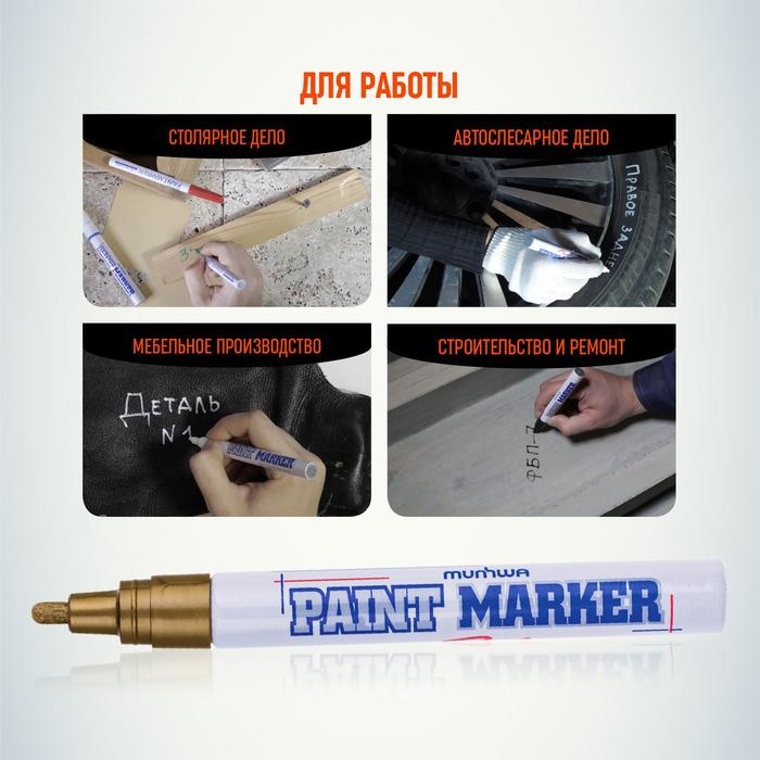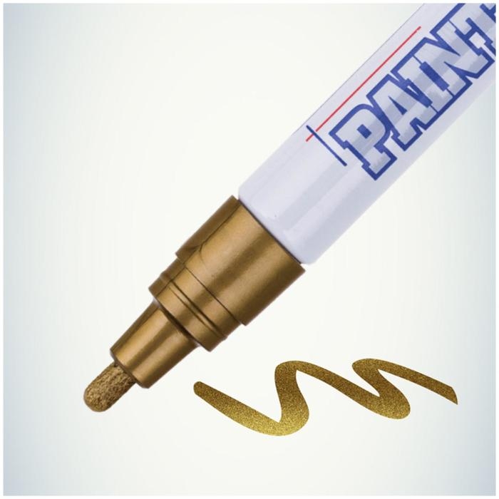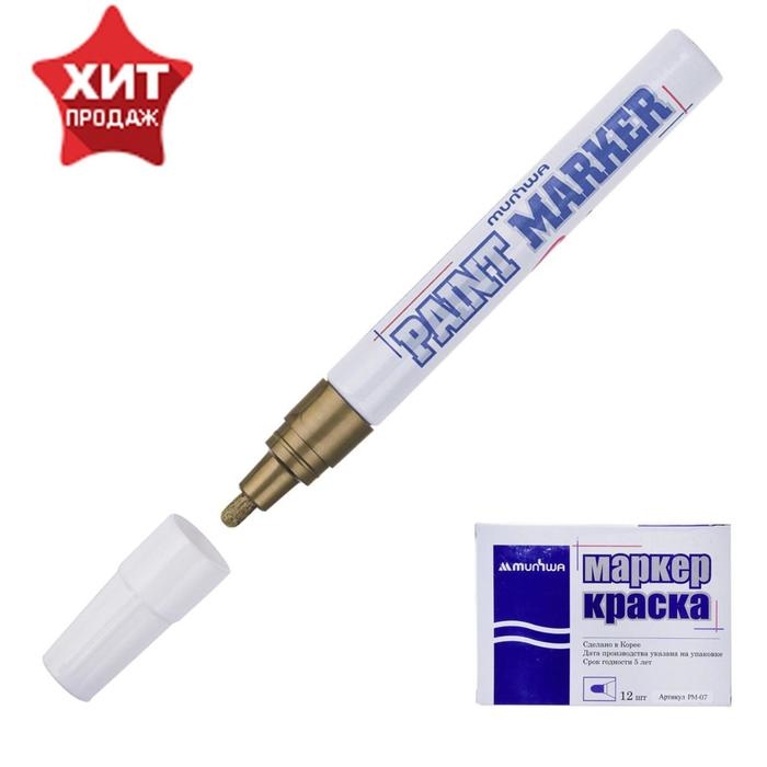 Маркер-краска (лаковый маркер) MunHwa - профессиональный лаковый маркер на нитрооснове. Маркер-краска MunHwa пишет на всех типах поверхностей: металл, дерево, резина, бетон, стекло, кожа. Цвет чернил - золотой, диаметр пишущего узла - 4 мм.