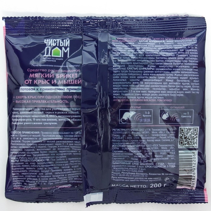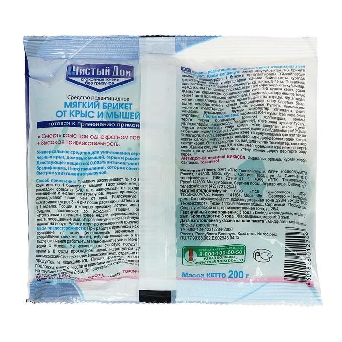 Тесто-брикет от крыс и мышей Чистый дом 200 г