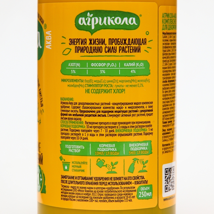 Используется как для корневой, так и для внекорневой подкормки. При норме разведения 5-10 мл удобрения на 1 л воды, флакона объемом 250 мл достаточно для получения 25-50 л подкормочного раствора.