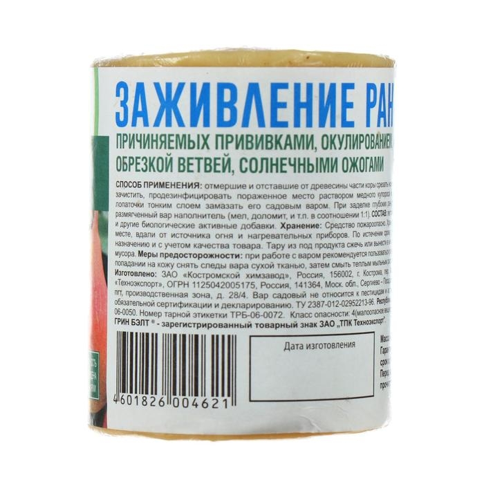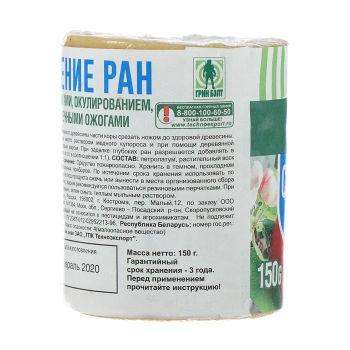 Средство для заживления ран плодовых и декоративных деревьев, причиняемых прививками, окулированием или обрезкой ветвей, солнечными ожогами.