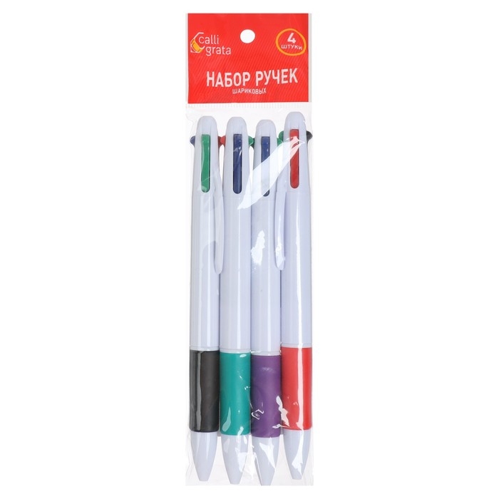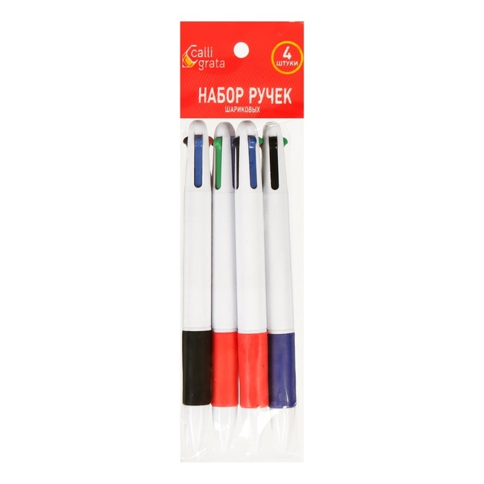 Набор ручек шариковых Calligrata, 4 штуки, автоматических, стержень 4-х цветный