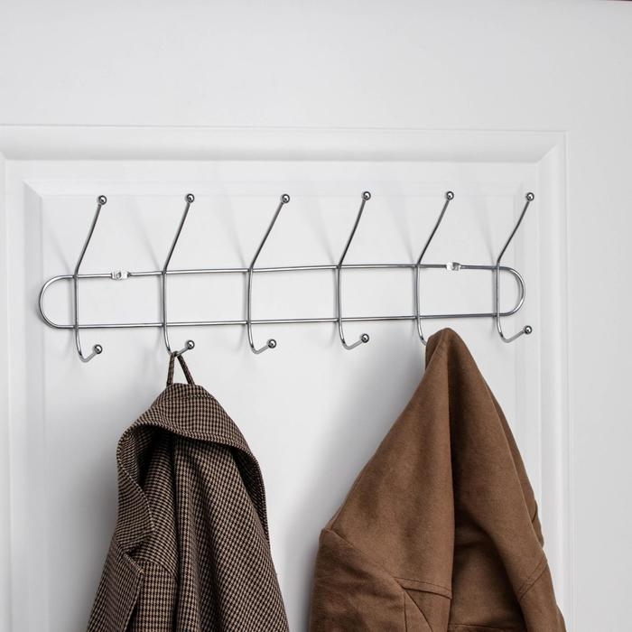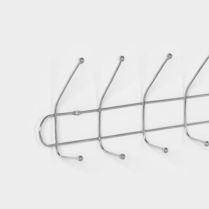 Вешалка настенная на 6 двойных крючков Доляна «Блеск», 48×13,5×6,5 см, цвет серебряный