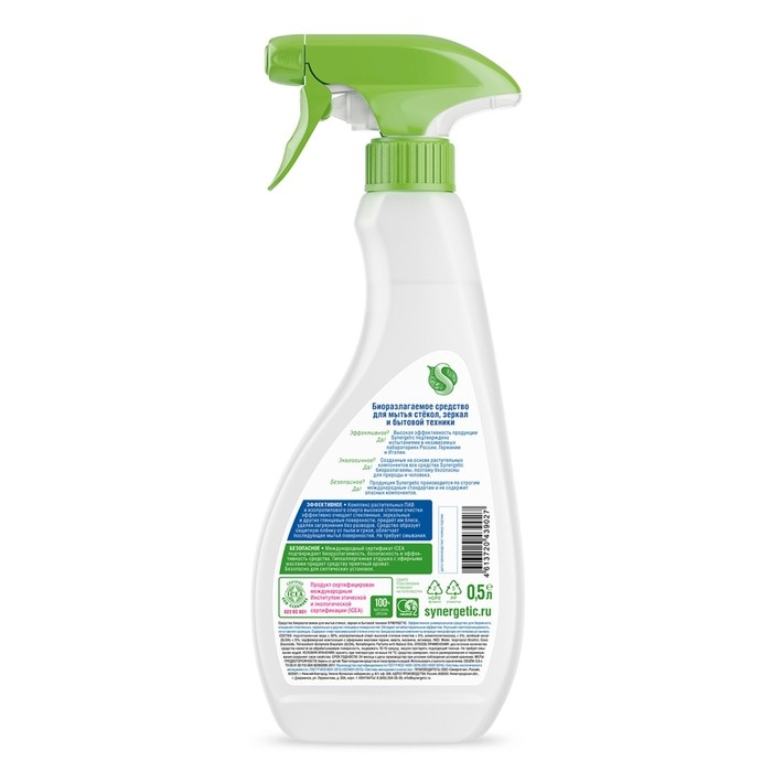 Средство для мытья стёкол, зеркал и мебели Synergetic, 500 мл