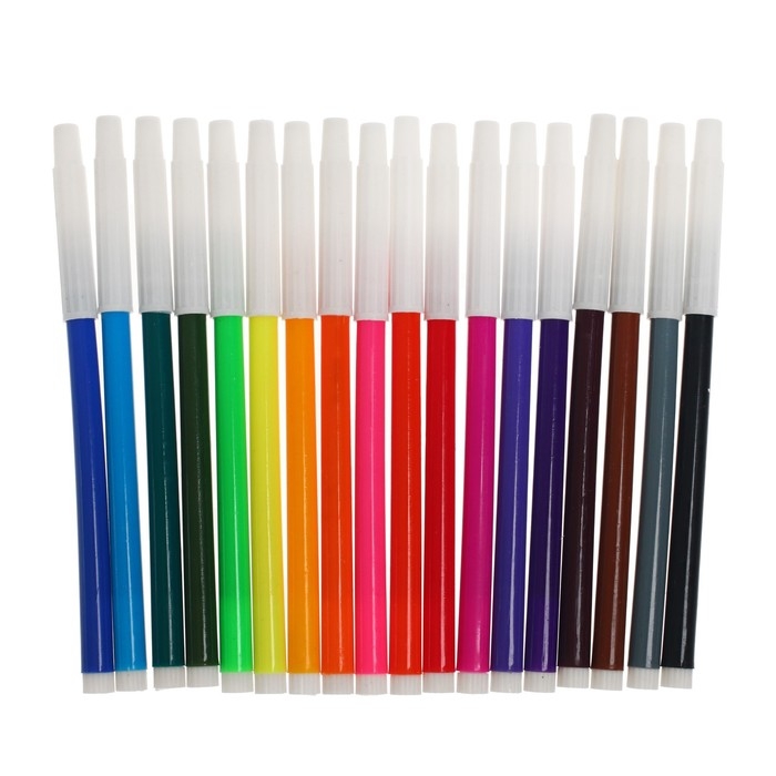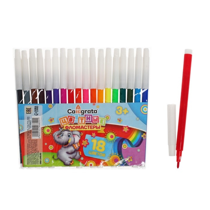 Набор фломастеров содержит 18 ярких и насыщенных цветов, невентелируемый колпачок. Идеально подходят для детей от 3-х лет и для тех, кто только начинает свой творческий путь. Фломастеры состоят из пластика, чернил. Упаковка представлена в виде PVC пакета. Благодаря фломастерам Вы сможете воплотить все свои творческие фантазии в реальность.