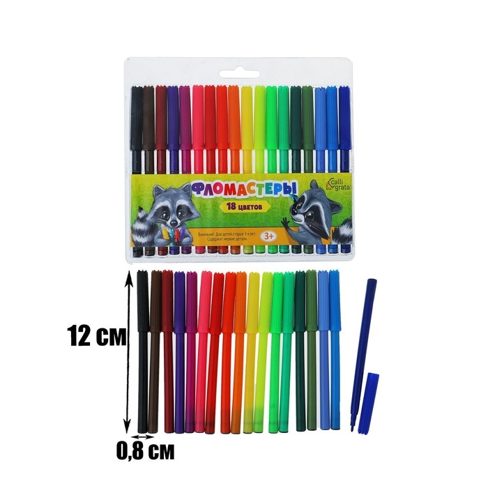 Набор фломастеров Calligrata содержит 18 ярких и насыщенных цветов. Вентилируемый колпачок обеспечивает безопасное рисование для ребенка . Идеально подходят для детей от 3-х лет и для тех, кто только начинает свой творческий путь. Фломастеры состоят из пластика, чернил. Упаковка представлена в виде PVC пакета. Благодаря фломастерам Вы сможете воплотить все свои творческие фантазии в реальность.