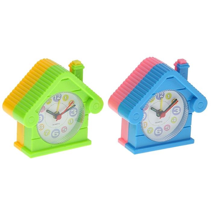 Часы настольные будильник детский с подсветкой "Домик", 9 х 8.5 см, микс