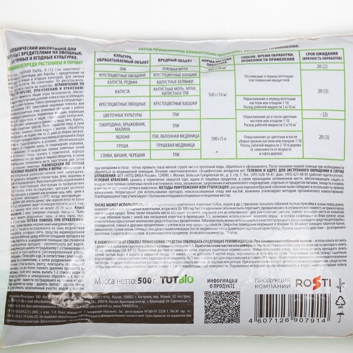 Средство от насекомых вредителей Табачная пыль LETTO 500 г