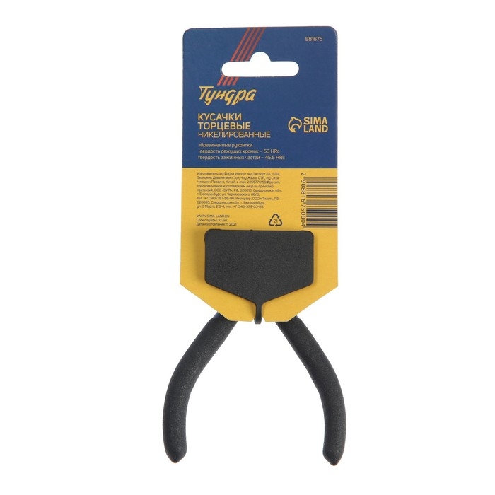 Кусачки торцевые ТУНДРА mini, никелированные, обрезиненные рукоятки, 105 мм