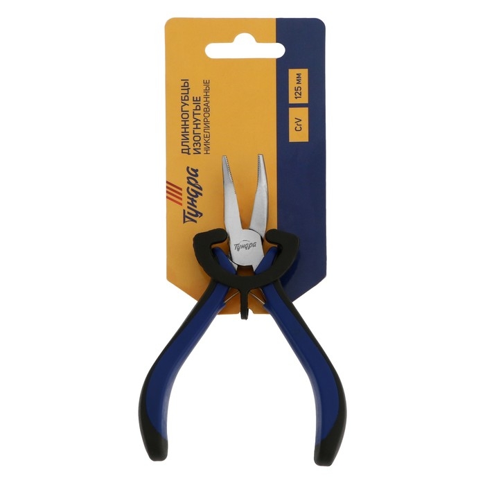 Длинногубцы изогнутые ТУНДРА mini, никелированные, двухкомпонентные рукоятки, 125 мм