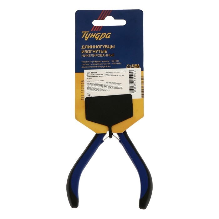 Длинногубцы изогнутые ТУНДРА, CrV, никелированные, двухкомпонентные рукоятки, 160 мм
