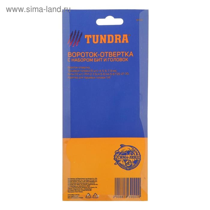 Отвертка с набором бит и головок ТУНДРА, 19 предметов