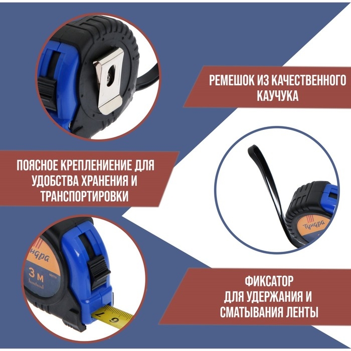 Рулетка ТУНДРА, обрезиненный корпус, 3 м х 16 мм