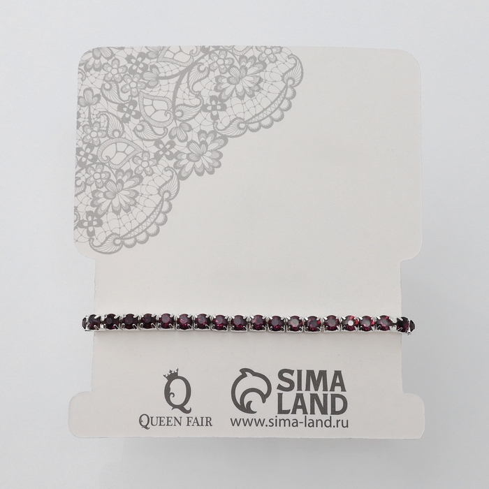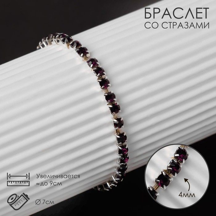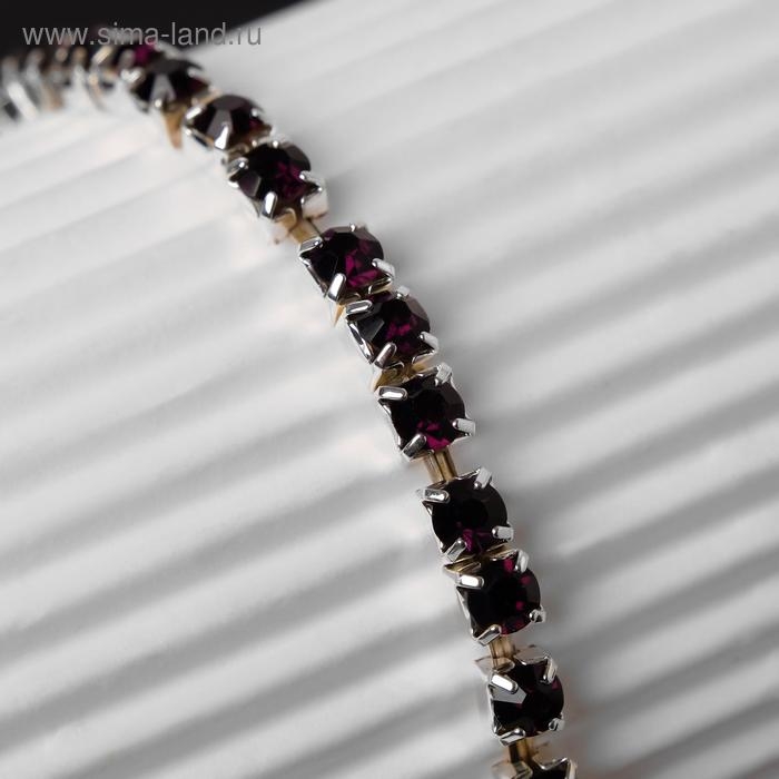 Браслет со стразами «Лёд» 1 ряд, цвет тёмно-фиолетовый в серебре, L=7 см